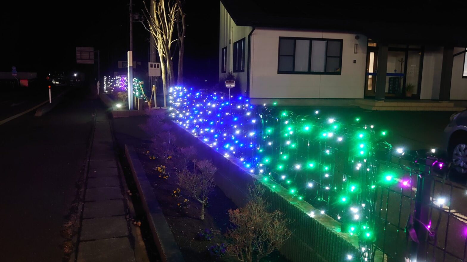 弊社入口にイルミネーションを設置しております。